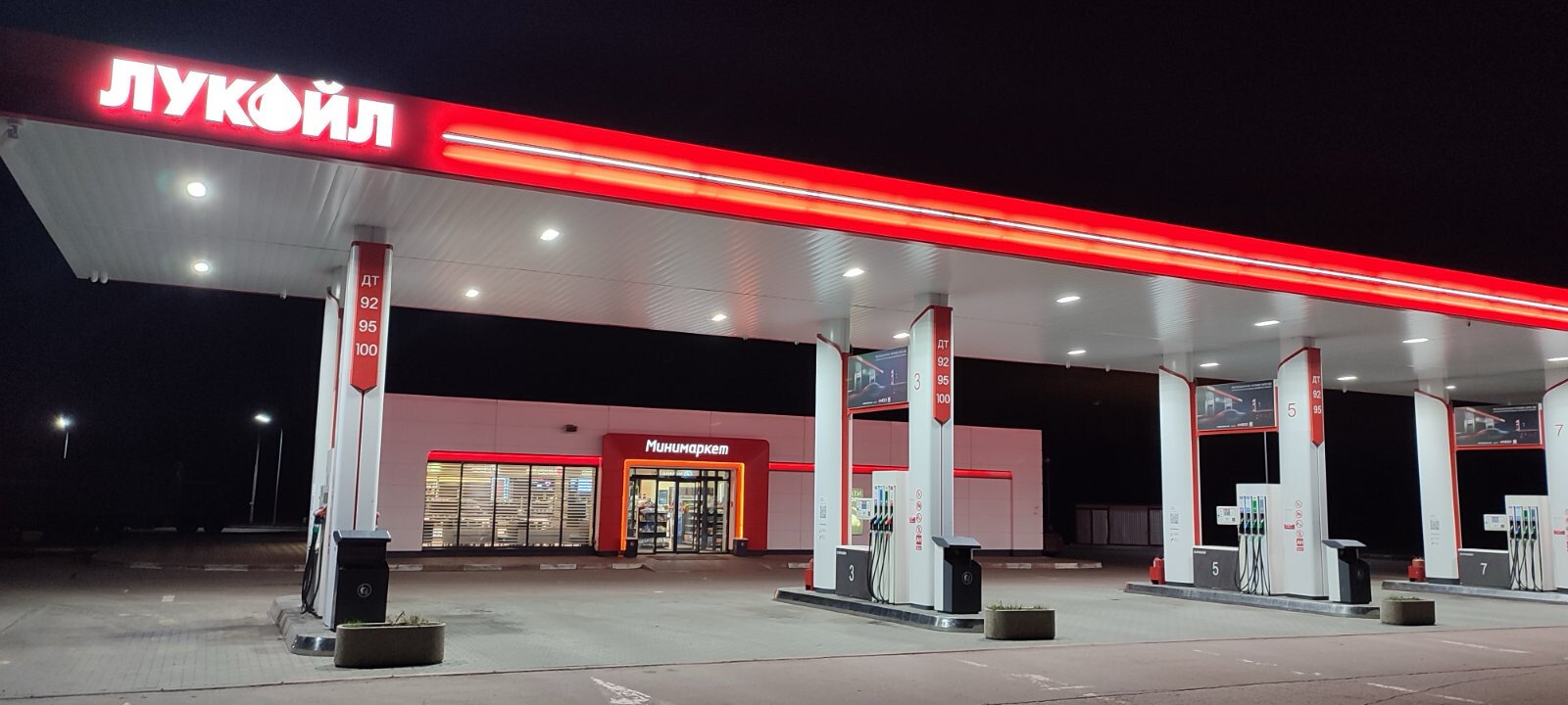 Заказчик — АЗС «Лукойл» — обратились к нам для оформления заправки, чтобы обновить внешний вид. Основные требования при выполнении заказа: