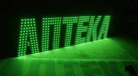 Светодиодные led буквы с открытыми пикселями изготовлены за 10 дней и установлен за 6 часов. Работает 11 месяцев исправно. Светодиодные led буквы с открытыми пикселями без повреждений.