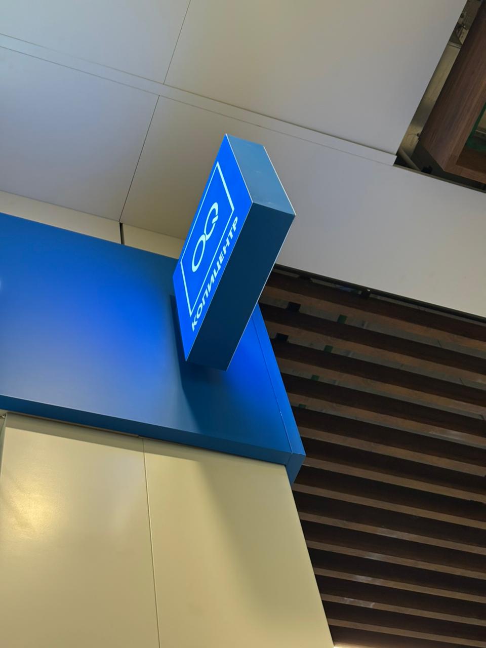 Доставка и монтаж выполнены по адресу: просп. Красной Армии, 186/2, Сергиев Посад. Световой короб подвесили на стальные тросы, закрепив их к потолку с помощью анкерных креплений. Кабели спрятаны в декоративный кабель-канал и аккуратно выведены к источнику питания.