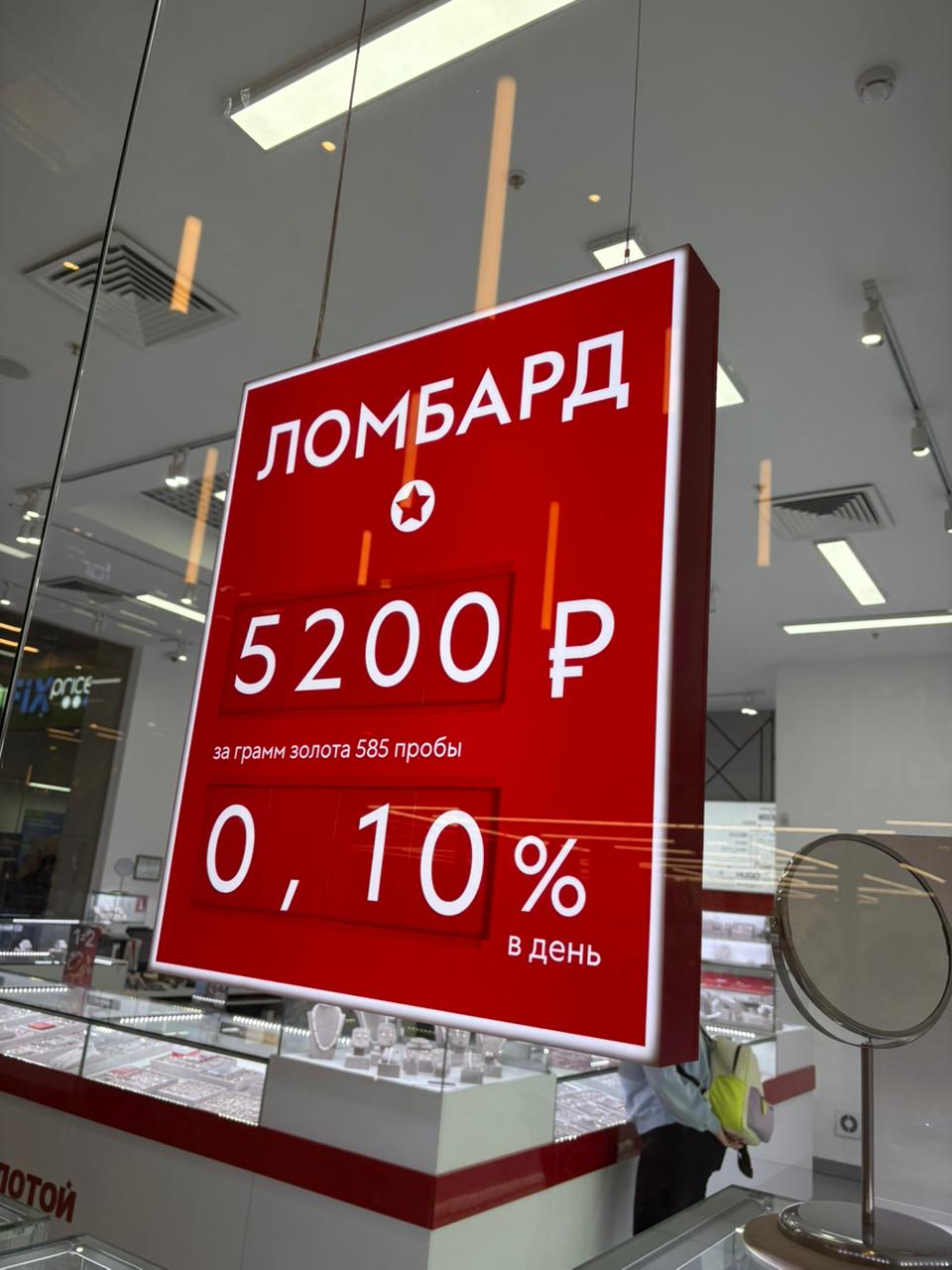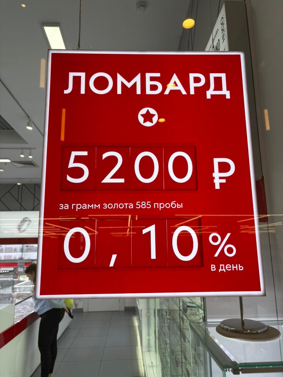 Заказчик — ломбард — обратился к нам для изготовления светового короба, который должен был выделяться на фоне соседних магазинов и чётко информировать посетителей о курсе золота и процентной ставке.