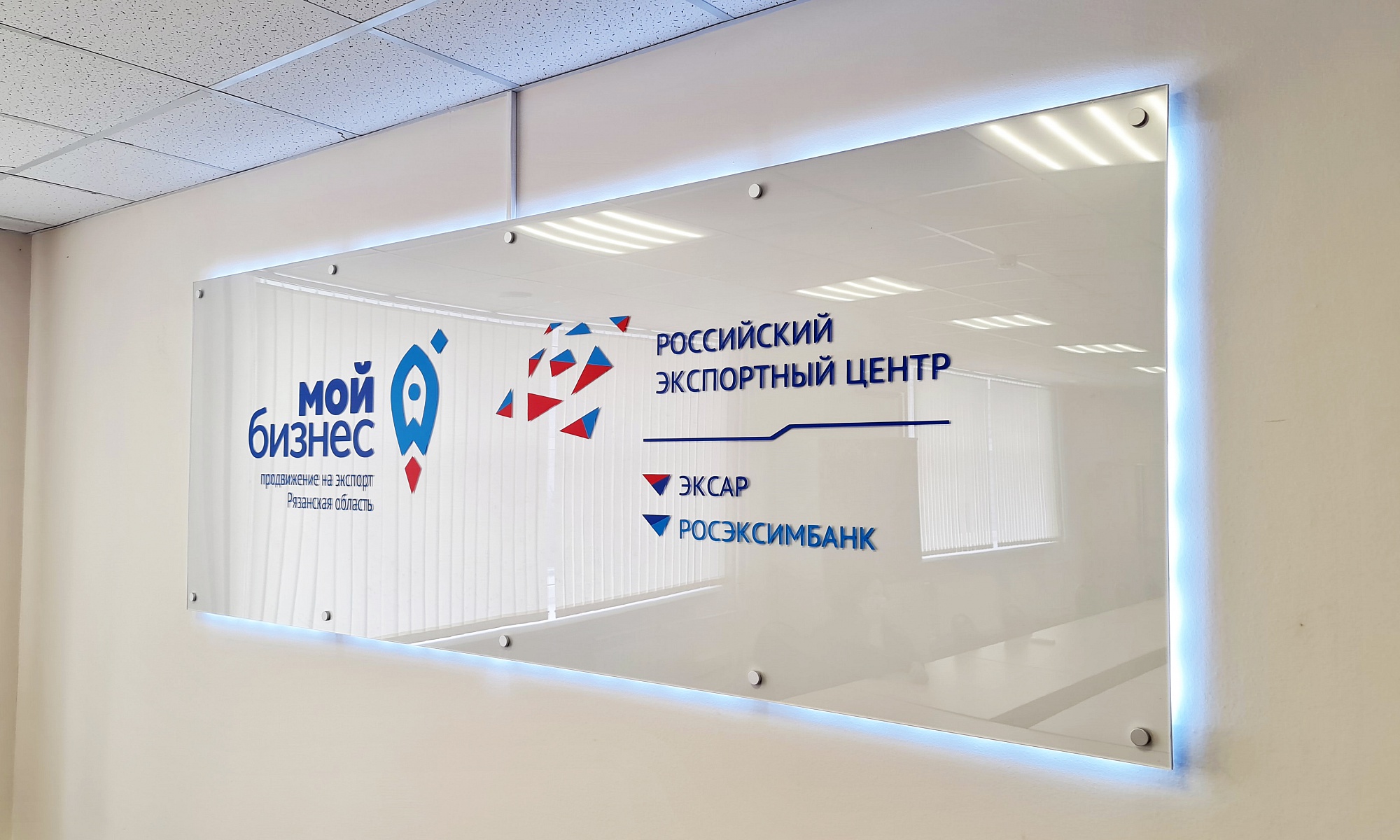 Доставка выполнена по адресу: г. Рязань, ул. Каширина, 1Б. Установка произведена внутри здания: табличка закреплена на стену с помощью надёжных металлических держателей, которые обеспечили прочность и эстетичный внешний вид конструкции.